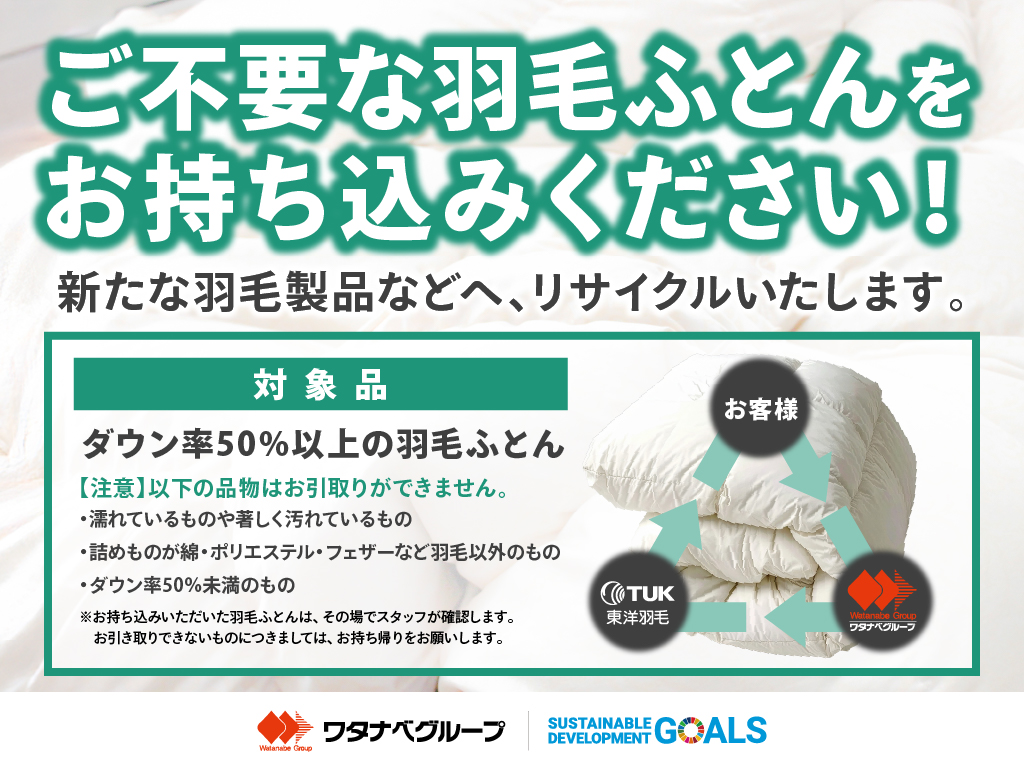 ご家庭で不要になった羽毛布団をぜひこの機会にお持ちください